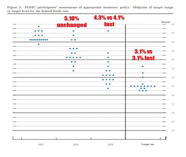 Výbor Fedu sa snaží dosiahnuť maximálnu zamestnanosť a infláciu držať na úrovni blízkej dvom percentám v dlhodobom horizonte. Na podporu týchto cieľov v stredu zvýšil sadzby na úroveň 5 % a očakáva, že niektoré ďalšie úpravy menovej politiky môžu byť vhodné. Výbor bude naďalej sledovať prichádzajúce informácie z ekonomiky a posúdi ich dôsledky pre menovú politiku. Je silne odhodlaný vrátiť infláciu na svoj cieľ 2 %.