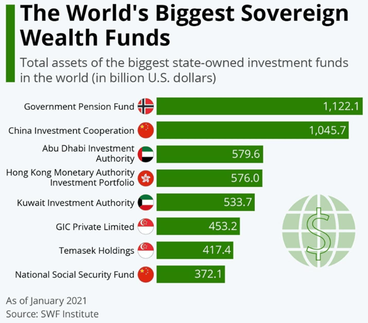 Graf 2: Najväčšie fondy na svete, zdroj: SWF Institute, 2021