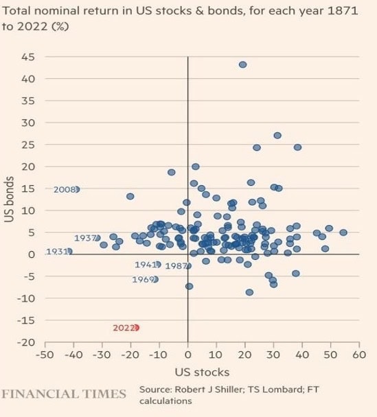 Po „žatve“ v roku 2021 prišiel rok 2022 so silnou korekciou, ktorá bola spôsobená aj vplyvom neočakávaných udalostí. Najmä vojna na Ukrajine a následná búrka na trhu s energetickými komoditami zatočili s inflačnými plánmi centrálnych bánk, ktoré museli vynakladať na jej skrotenie čoraz viac úsilia v podobe agresívneho rastu úrokových sadzieb. To zlikvidovalo vidiny na ďalší rok nadpriemerných ziskov a naopak, prišiel najhorší rok pre akciovo-dlhopisového investora v histórii.