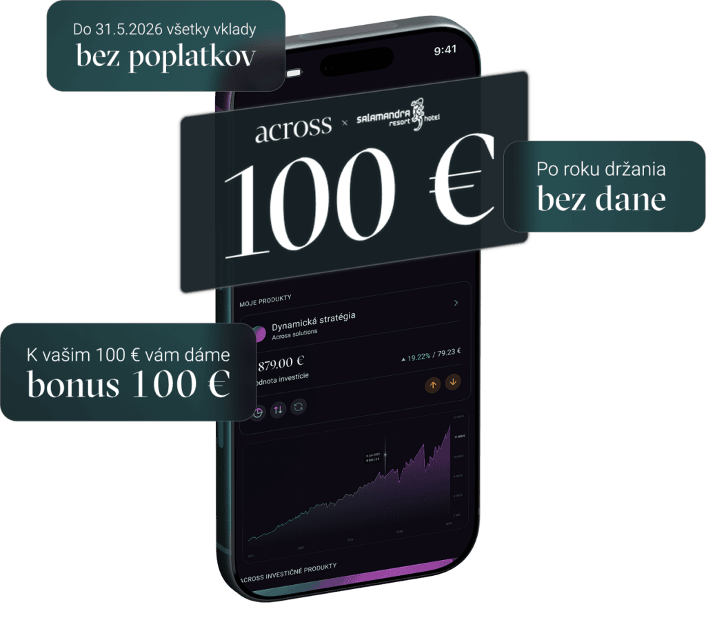 Vstúpte do sveta investovania s Acrossom. K vášmu pobytu na Salamandre vám pribalíme 100 € k prvej investícii, aby váš majetok rástol hneď od prvého dňa.