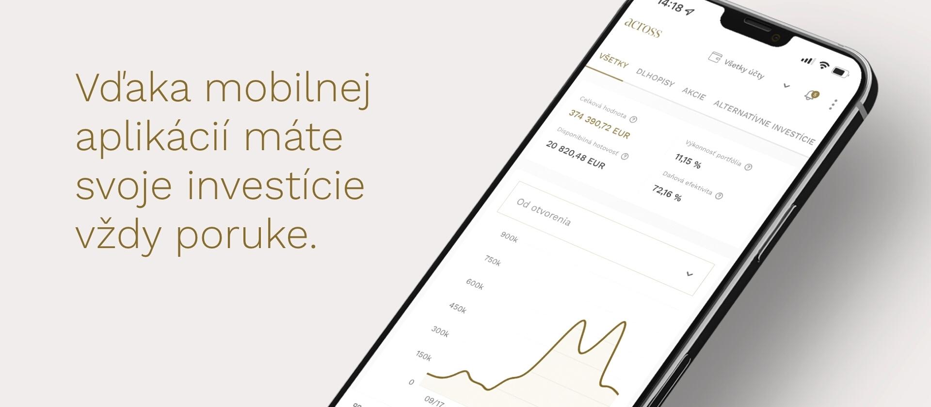 Mobilná aplikácia Across Connect je základom modernej správy úspor. Uľahčuje investovanie, prináša neustály prehľad o účte, umožňuje podpisovať pokyny a robiť zmeny z ktoréhokoľvek miesta na zemi. Cez mobilnú aplikáciu si zároveň viete skontrolovať zloženie vášho portfólia, vykonané pohyby a transakcie, detaily jednotlivých investícií, zobraziť výpisy z účtu, nastaviť spôsob ich zasielania alebo aktualizovať kontaktné údaje.